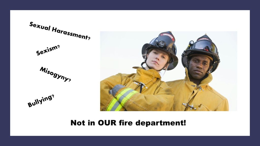 So what does that have to do with today’s topic? Simple. Nobody in a fire department sexually harasses a female firefighter—or worse, sexually assaults or rapes her—without somebody else knowing about it.